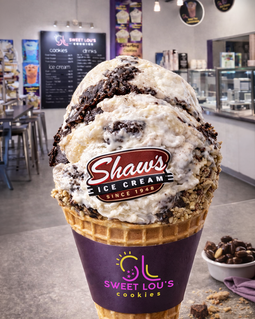 Sweet Lou's Sweetscapes is our way of rewarding you for choosing Sweet Lou's Cookies. You get a free welcome code, and a code every purchase. Win a Milkshake, Sundae, and much more. At minimum, you'll win a free cookie!
